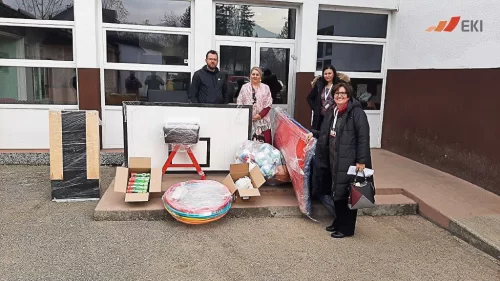 EKI je prepoznao ozbiljnost njihovog problema, te donirao sportsku opremu koja im je bila najpotrebnija. Donacija se sastojala od lopti za mali fudbal, odbojku i košarku, mreža za odbojku i rukomet, mreža za koševe, strunjača, kozlića, odskočne daske, hulahop obruča i vijača.